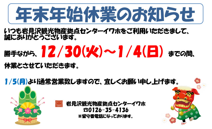 年末年始休業のお知らせ